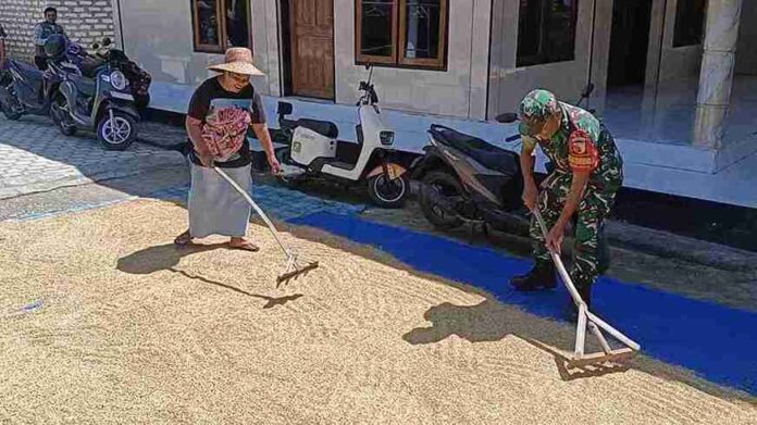 Kehadiran Babinsa di tengah petani tidak hanya membantu proses penjemuran, tetapi juga meringankan beban pekerjaan warga.
