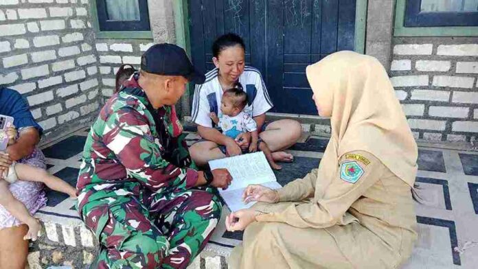 PAMEKASAN | SIGAP88 – Babinsa Koramil 0826-02 Tlanakan, Sertu Umarul Faruk, melaksanakan pendampingan pengecekan dan pendataan anak balita bersama bidan desa dan kader posyandu di Dusun Mayang, Desa Branta Pesisir, Kecamatan Tlanakan, Kabupaten Pamekasan.