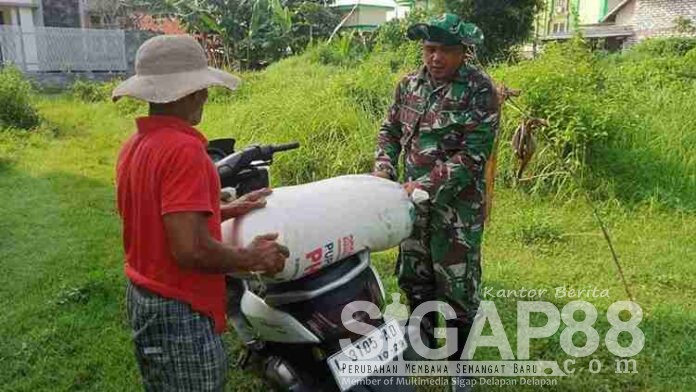 PAMEKASAN | SIGAP88 – Dalam upaya memperkuat ketahanan pangan serta membina kedekatan dengan masyarakat, Babinsa Koramil 0826-07 Pegantenan, Sertu Ismail Marsuki, melaksanakan kegiatan pendampingan pertanian dengan membantu salah satu warga binaan, Sahawi (54), di Dusun Bhaban, Desa Tlagah, Kecamatan Pegantenan, Kabupaten Pamekasan, Minggu(20/4)