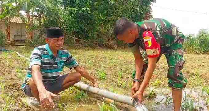 “Kami hadir langsung untuk memberikan semangat kepada para petani agar tetap produktif, sekaligus memastikan tanaman mereka mendapatkan pasokan air yang cukup di musim kemarau ini,” ujar Serda M. Nur Hidayat.