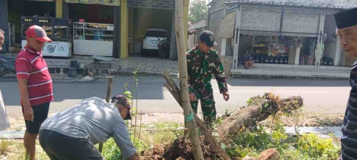 PAMEKASAN | SIGAP88 – Babinsa Koramil 0826-11 Batumarmar, Sertu Nur Faizin, melaksanakan kegiatan komunikasi sosial (komsos) sekaligus gotong royong bersama warga binaannya di Dusun Nancak, Desa Bujur Barat, Kecamatan Batumarmar, Kabupaten Pamekasan.