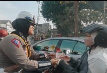 Polwan Polres Mojokerto Bagikan Coklat, Ajak Masyarakat Tertib Lalulintas