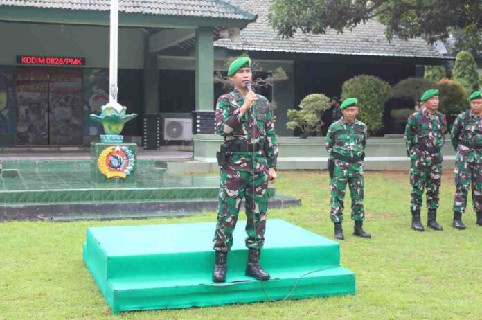 PAMEKASAN | SIGAP88 – Dandim 0826 Pamekasan Letkol Kav Agus Wibowo Hendratmoko, SH., M.Han., memberikan Jam Komandan kepada seluruh prajurit dan PNS Kodim 0826 Pamekasan usai pelaksanaan upacara di Lapangan Upacara Makodim 0826 Pamekasan, Senin (17/11/2025).