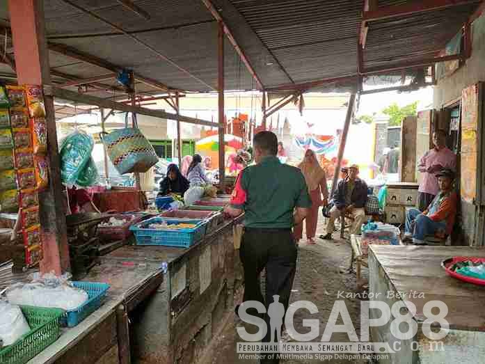 PAMEKASAN | SIGAP88 – Babinsa Koramil 0826-05 Larangan, Serda Jumroh, melakukan pemantauan harga sembako di Pasar Larangan, Kecamatan Larangan Kabupaten Pamekasan, guna memastikan ketersediaan dan kestabilan harga menjelang lebaran.