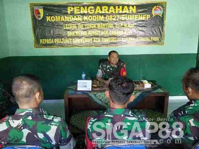 SUMENEP | Sigap88 – Dandim 0827 Sumenep, Letkol Inf Yoyok Wahyudi, S.I.P,.M.Han memberikan pengarahan kepada prajurit Koramil 0827/22 Masalembu dalam kunjungan kerjanya ke wilayah pulau Masalembu. Selasa (10/6/2025).
