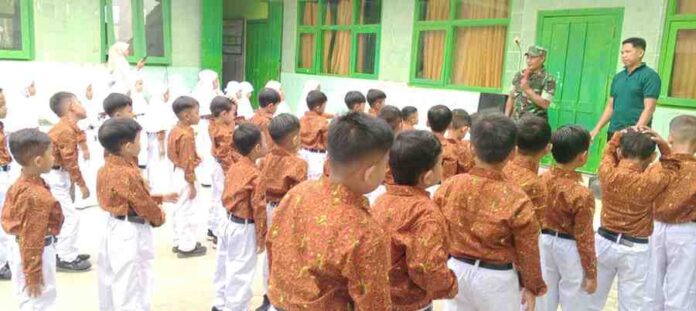 PAMEKASAN | SIGAP88 – Dalam rangka menanamkan sikap disiplin sejak dini, Pelda Johan Arif dari Koramil 0826-10 Waru memberikan pelatihan Peraturan Baris Berbaris (PBB) kepada siswa-siswi baru Sekolah Dasar Negeri (SDN) 1 Waru, Rabu (16/7/2025).