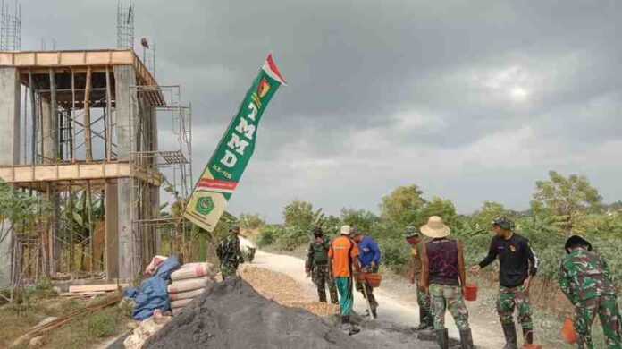 PAMEKASAN | SIGAP88 – Pembangunan tandon air Program TNI Manunggal Membangun Desa (TMMD) ke-125 Kodim 0826 Pamekasan kini telah memasuki tahap pengecoran lantai bak air.