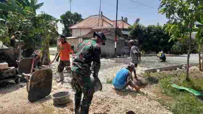Kegiatan tersebut merupakan bagian dari program fisik TNI Manunggal Membangun Desa (TMMD) Ke-125 Kodim 0826 Pamekasan yang bertujuan untuk meningkatkan infrastruktur pedesaan dan mempermudah akses warga dalam menjalankan aktivitas sehari-hari.