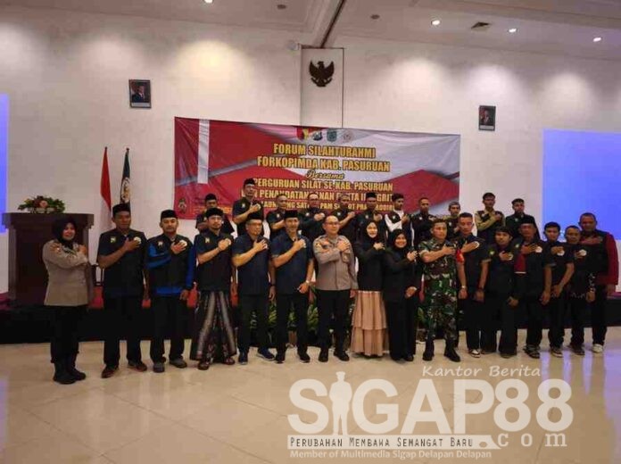 PASURUAN | SIGAP88 — Polres Pasuruan bersama unsur Forkopimda menghadiri pelantikan pengurus Ikatan Pencak Silat Indonesia (IPSI) Kabupaten Pasuruan masa bakti 2025–2029 serta deklarasi Satgas Sentot Prawirodirdjo, di salah satu hotel Kecamatan Prigen, Minggu (15/6/2025).