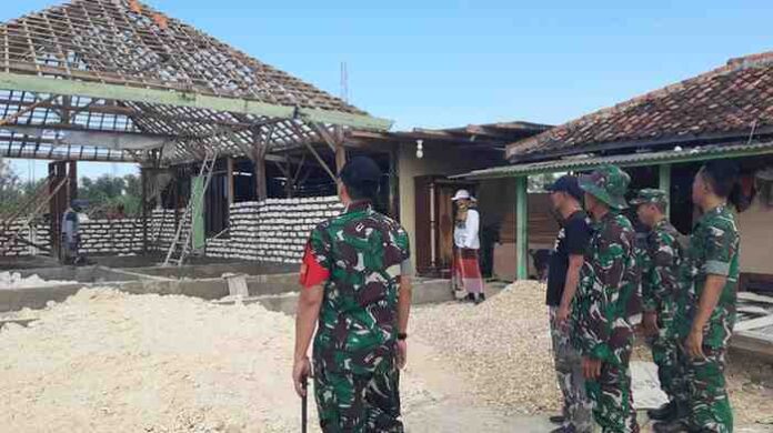 Dandim 0826 Pamekasan Letkol Inf Herik Prasetiawan selaku Dansatgas TMMD bersama Kepala Desa Kramat, Robbi Sugara, turut meninjau langsung progres pembangunan rumah milik Halili.
