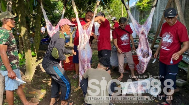 Sebanyak 14 Hewan Kurban terdiri dari 4 ekor sapi dan 10 ekor kambing. Dagingnya dibagikan kepada warga yang membutuhkan, Sabtu (7/6/2025).