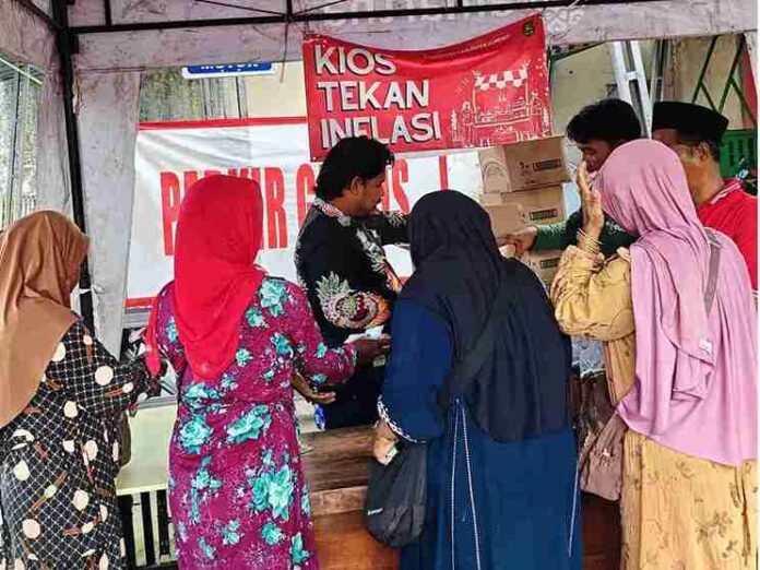SUMENEP | SIGAP88 – Warung Tekan Harga Pasar atau Teras yang dikelola Tim Pengendalian Inflasi Daerah (TPID) Sumenep, Madura, Jawa Timur bersama dengan Bulog Madura berhasil menjual Minyakita di Pasar Anom Baru, Sumenep, Kamis (16/4).